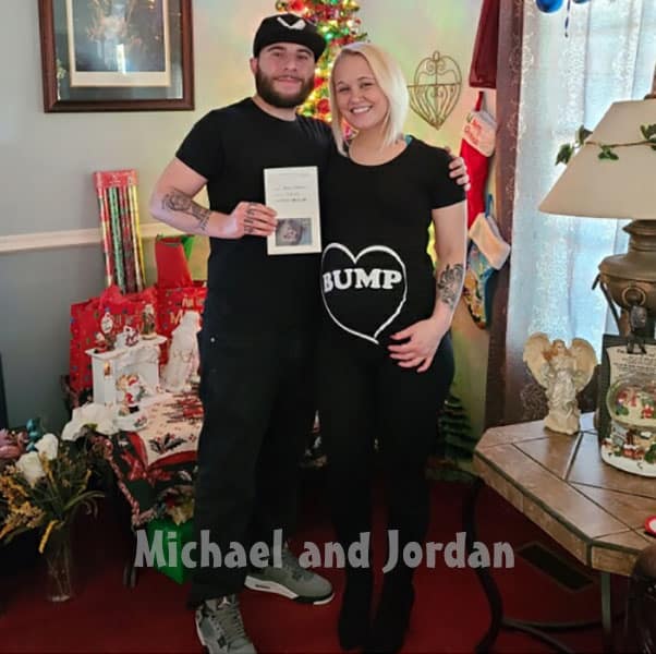 Despite Michael’s low profile on social media, we do have the black-and-white photo of him with Jordan above thanks to Jordan’s Facebook page. We also have a photo of Jordan and Michael together as part of a pregnancy announcement shoot in which you can see Jordan showing off her baby bump: