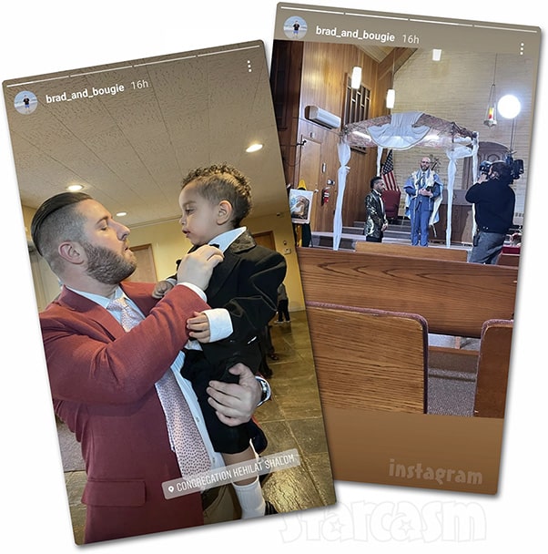 In the second photo, Brad can be seen holding Ariela and Biniyam’s son, Avi, who is super duper dapper in his tuxedo. Here are both pictures: