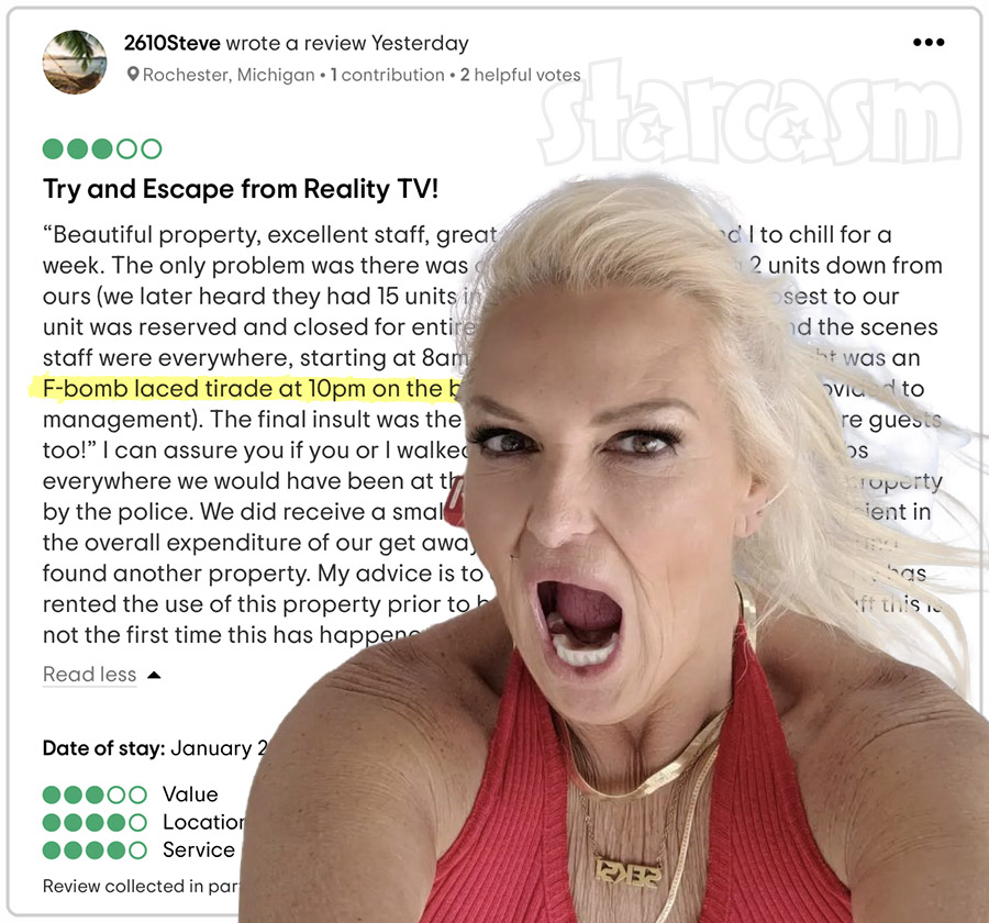 As you might expect with a cast that includes Angela Deem, it seems that things got a little loud and a little vulgar. “The highlight was an F-bomb laced tirade at 10pm on the beach outside our door,” Steve recapped. He added that he provided a video of the incident to management, but unfortunately he did not include the video as part of his review.