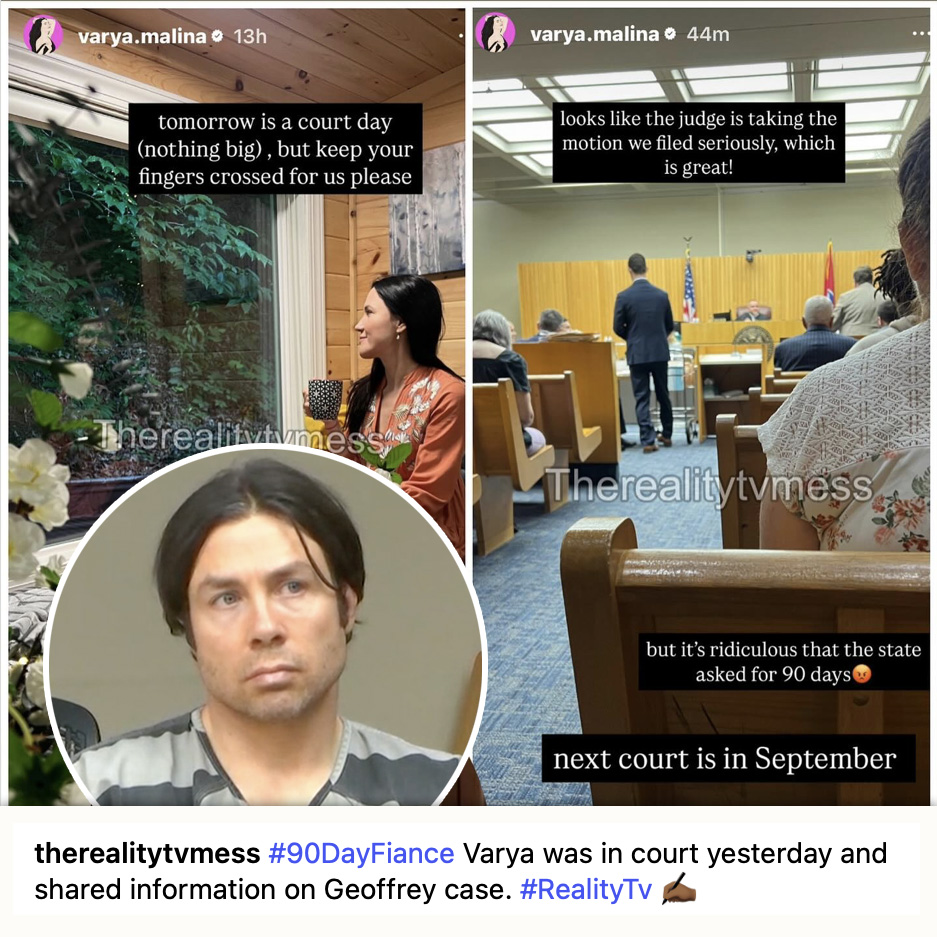Varya Malina recently shared Instagram posts referencing a court date and a motion, which is likely Geoffrey’s appeal.