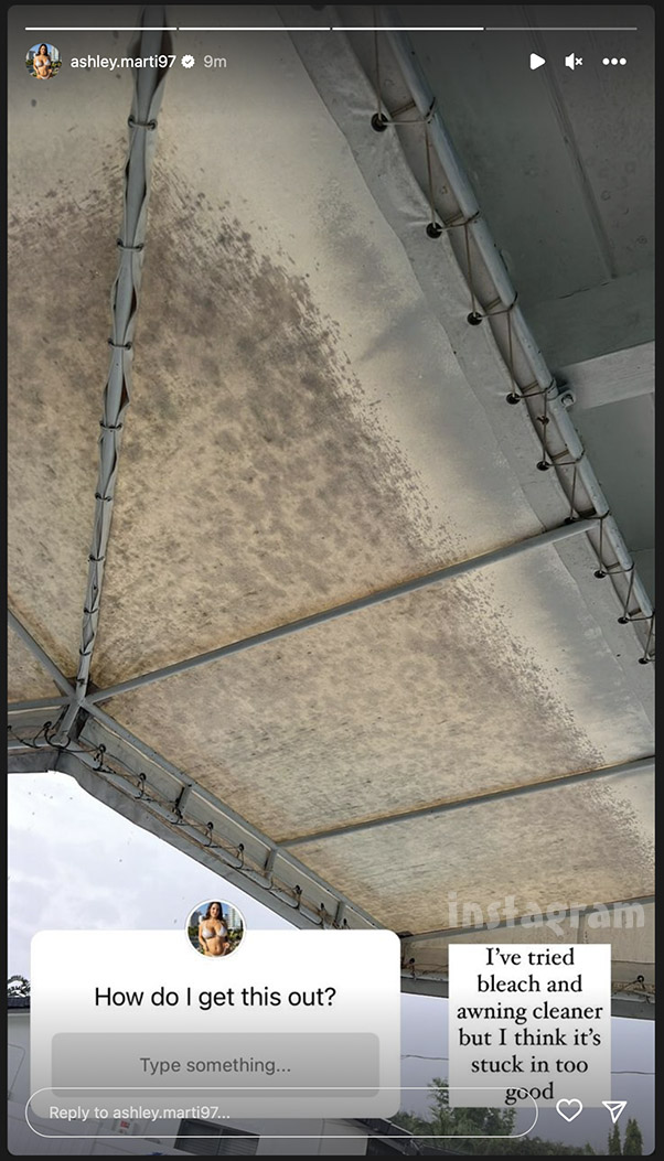 Unfortunately, home ownership hasn’t been all watermelons and bikinis. Ashley has shared a couple issues she’s had since buying the property on social media, including marble tiles in the bathroom that tend to collect water and a pool awning that seems averse to cleaning: