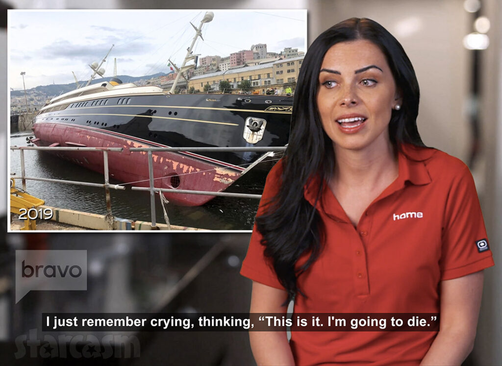 Natasha then shares some specific details about her experience as Bravo shares frightening photos of a large yacht turned on its side beside a dock.