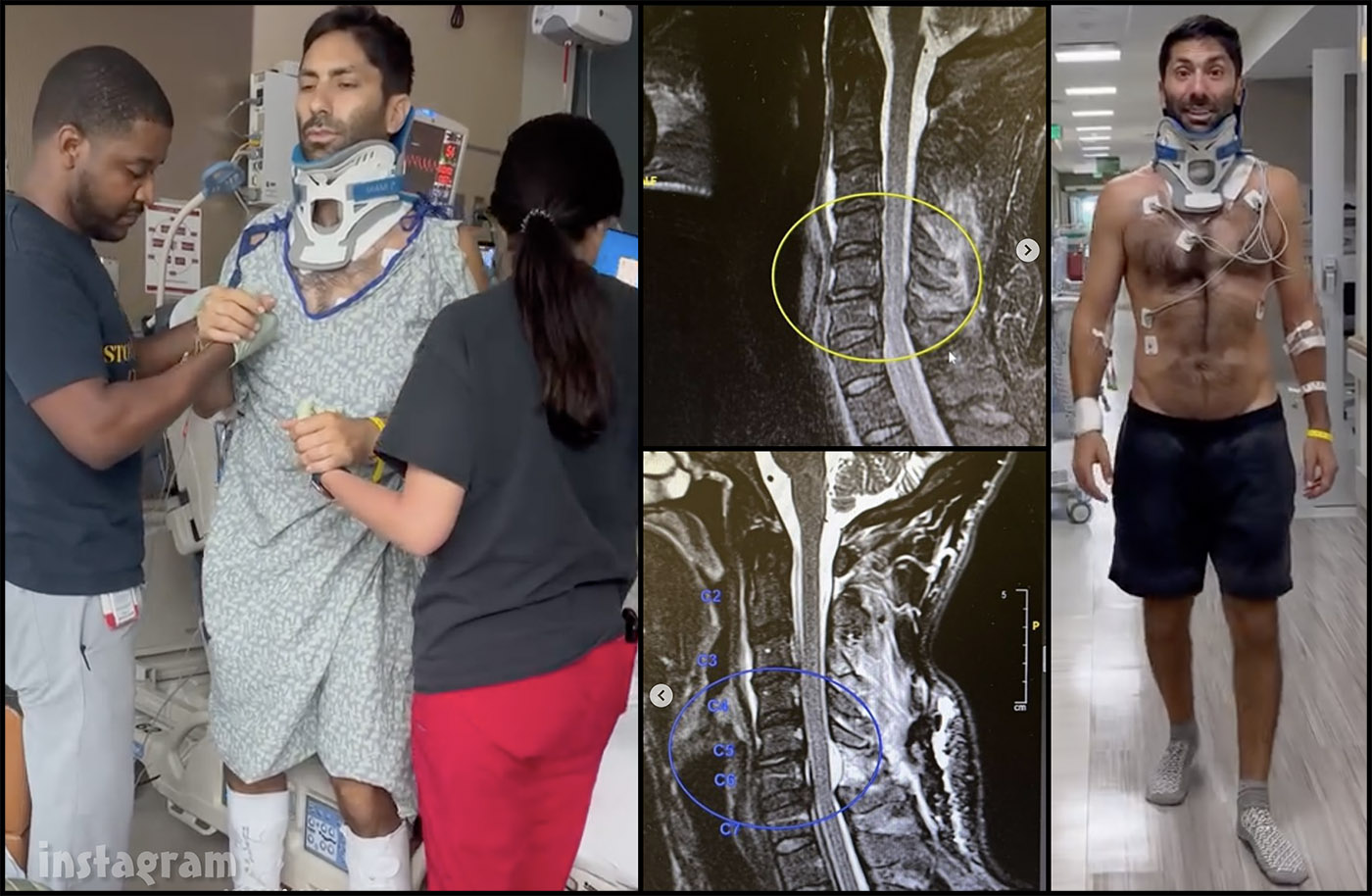 Nev shared a gallery of photos and videos on Instagram on Saturday, accompanied by a lengthy message explaining what happened and how thankful he was to survive and to likely avoid paralysis.