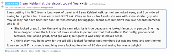 It was so cool! I’m currently watching every fucking iteration of 90 day and seeing her was a delight!”