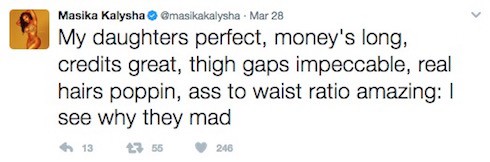 Now that a few days have passed, though, it looks like Masika has calmed down. Her only updates regarding the incident came on Twitter, and only addressed the Xanax allegations peripherally. In fact, if you hadn’t seen the original report, you wouldn’t have any reason to read between the lines: