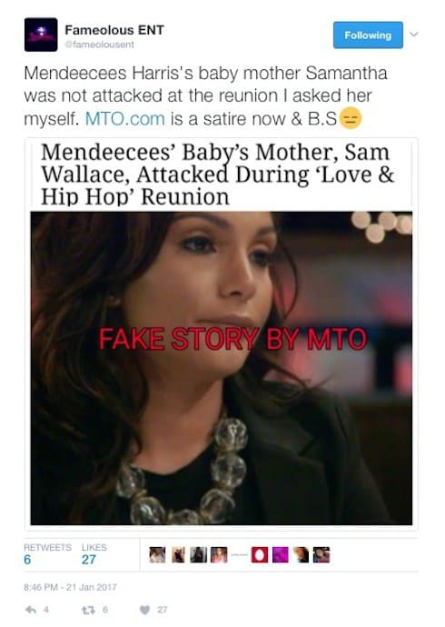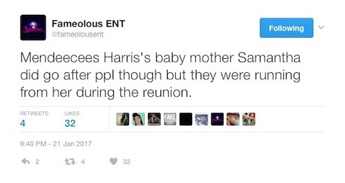 It’s probably best to start with the latest & most widespread rumor–namely, that Mendeecees Harris’ baby mama Samantha Wallace was attacked and badly injured during the taping. The article alleging such a thing, according to noted tea pourers Fameolous, is way off. In fact, it sounds like the opposite might be true, and Samantha didn’t manage to lay hands on anyone: