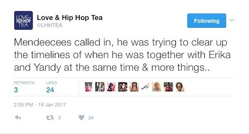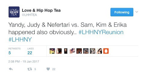 But fear not: apparently there was plenty of baby mama drama to be had. Yandy and Judy cast endless shade on Samantha and Erika, who returned the favor in kind. And it looks like Mendeecees even called in from prison, though it’s not clear how long he was able to participate for. Love & Hip Hop Tea brought the gossip:
