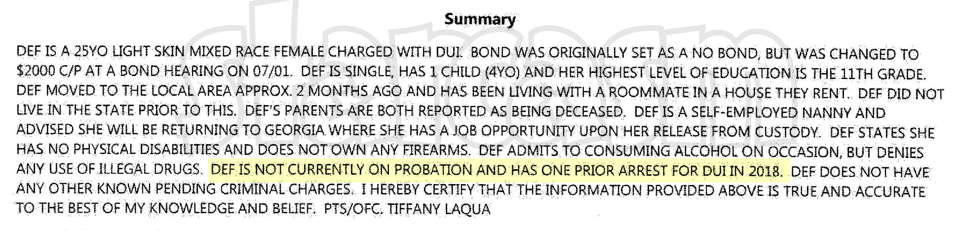 According to the charging documents, Ashley had a prior DUI arrest the year before. I was unable to find a record of that arrest.