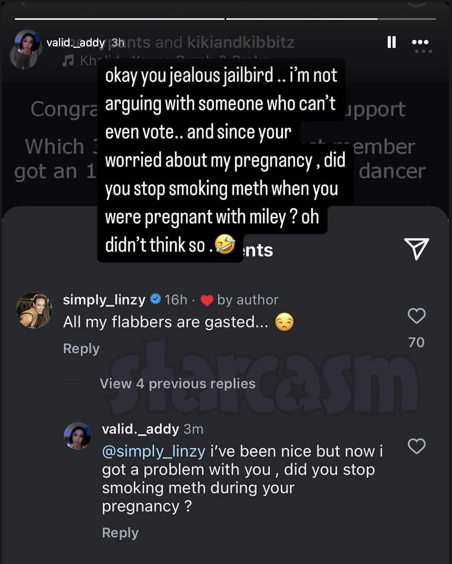 Addy was a little less respectful after Lindsey left a couple comments on a social media post about the pregnancy: