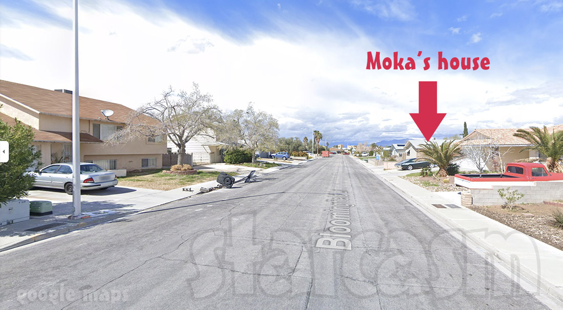Multiple outlets have tied the alleged Moka incident to a shooting that occurred in Las Vegas on Wednesday. The shooting happened on the same block as Moka’s reported residence. Here is a photo of the crime scene and a photo of the Las Vegas house where Moka reportedly lives: