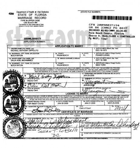 Starcasm.net has uncovered the marriage record for Michael Dippolito and the woman who hired an undercover cop to kill him, Dalia Dippolito. Also, we’ve found the warranty deed for the property Michael signed over to his wife just before she tried to do away with him.
