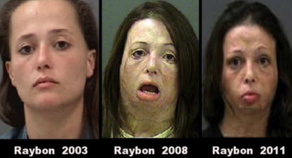 Narcotics detectives wearing protective equipment came on down to Heather’s and found materials and ingredients used to produce meth. They also rounded up 13 grams of meth powder and 32 grams of meth oil. In addition, a small metal pill bottle was found in Raybon’s purse containing contents that tested positive for meth.