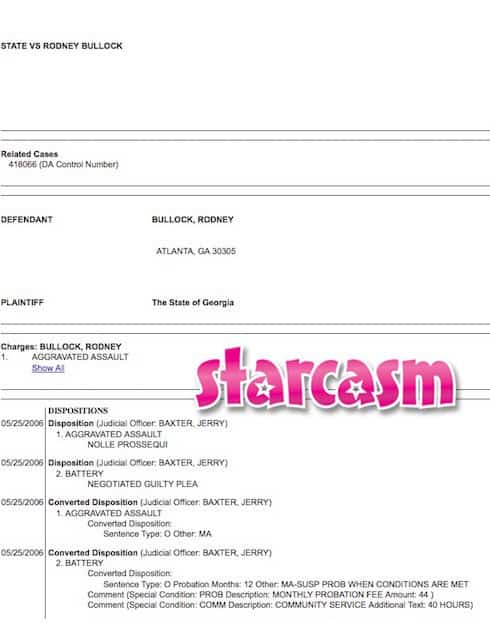 It was also in the premiere that Karlie Redd claimed Rod had recently been released from federal prison. We aren’t sure about that, but we do know that his 2006 arrest for assault & battery resulted in 12 months probation and 40 hours of community service, along with a monthly probation fee: