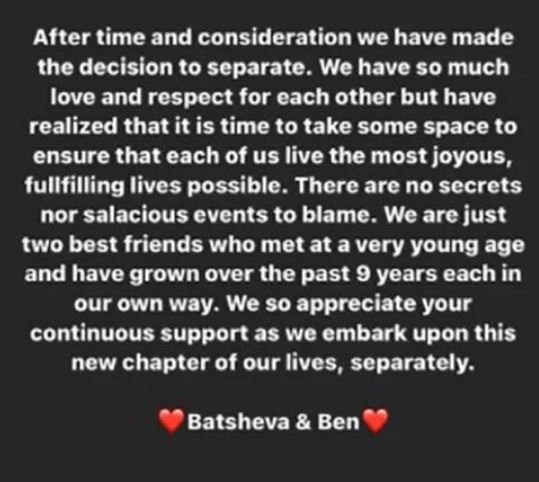 Sadly, Batsheva and Ben Weinstein ended their 9 year marriage in November 2021.