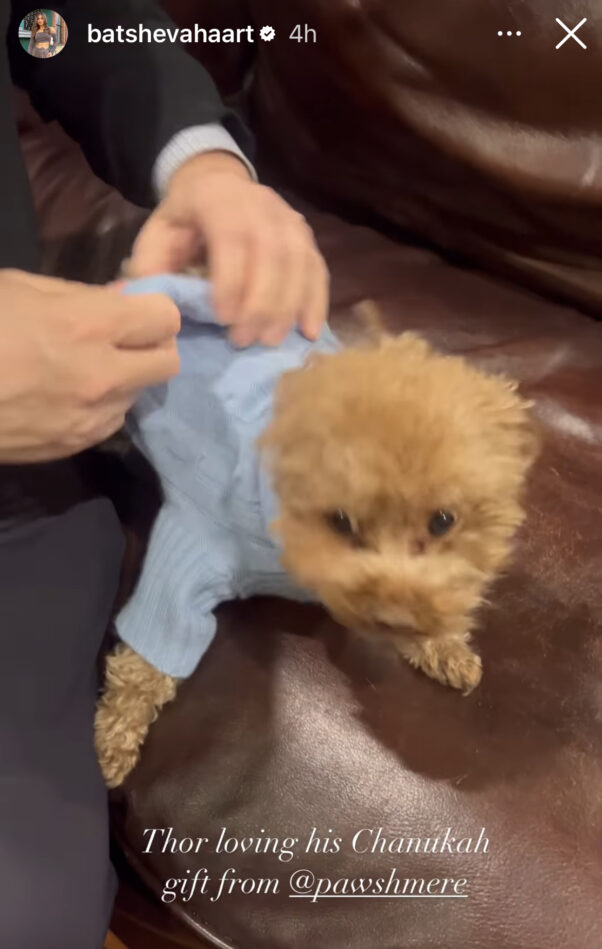 We do know that the event was pet friendly. Puppy Thor was decked out in a Chanukah sweater from Pawshmere.
