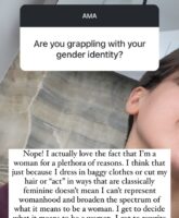 In an Instagram AMA (‘Ask Me Anything’) following the big chop, Miriam Haart was confronted with questions about her gender identity. Followers wondered if her ‘boy haircut’ meant she was experimenting with a more a ‘male’ expression.
