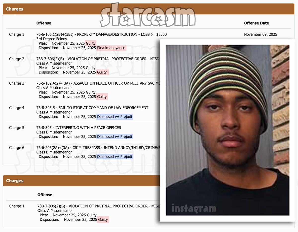 As a result of the plea deal, the charges of failure to stop at command of law enforcement, interfering with a peace officer, and criminal trespass were dismissed. (The criminal trespass charge was from the September arrests.)
