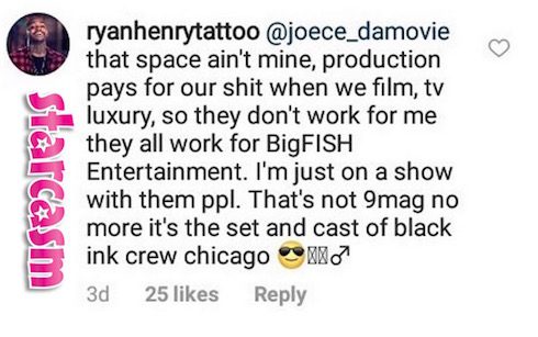 After that, Ryan claimed that the whole show is engineered by “production,” who “pays for [the cast’s] sh!t” when they film–and thus none of the cast members work for the tattoo shop in the technical sense.