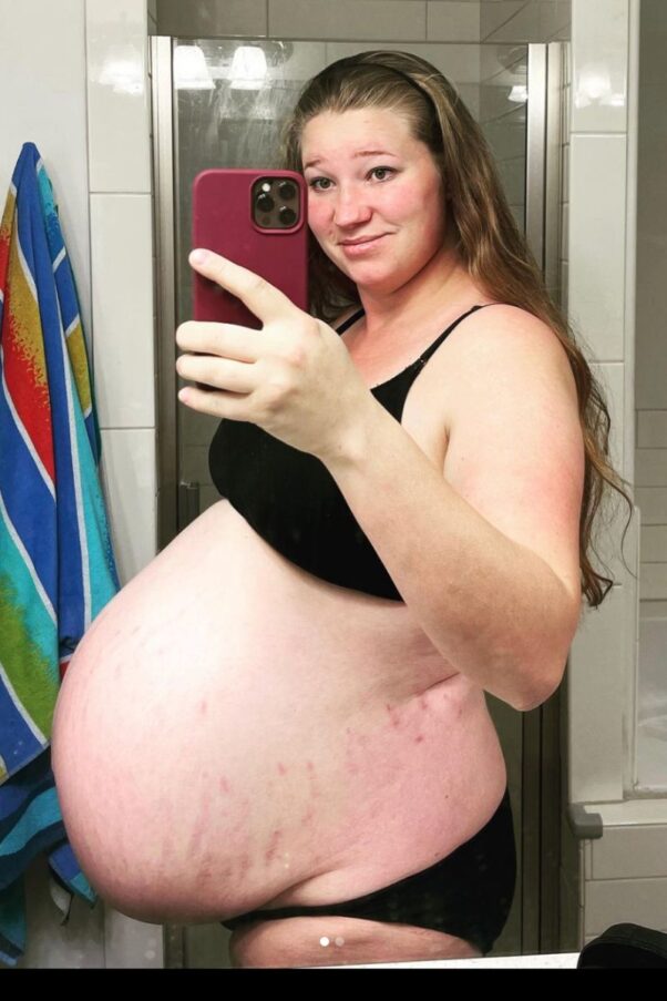 “My twin boys are doing great. Baby A is measuring 5.13lbs Baby B is 5.7lbs which is above average for their current stage,” Mykelti shared. “They also have hair and are running out of room in there. My body/pregnant belly is measuring 47 weeks!!! That’s 7 weeks past a normal pregnancy. AKA I’m really uncomfortable and don’t sleep well. But I have anywhere from today to three weeks left, so there’s an end in sight. Then a whole new and exciting/difficult challenge starts.