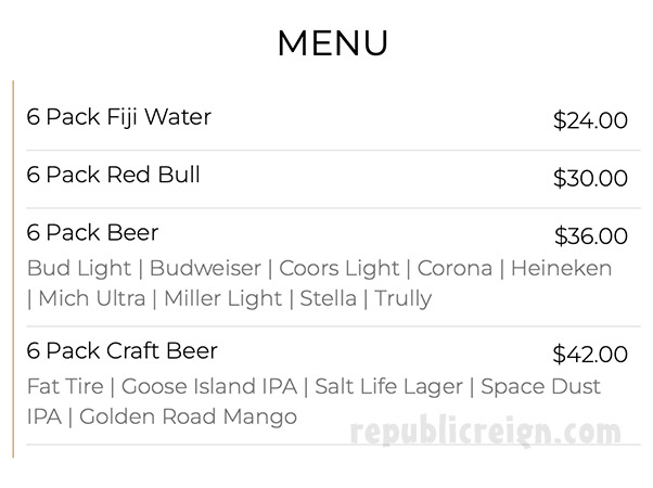 For those patrons wishing to distinguish themselves as king and/or queen of the Republic, you can opt to “ACE the Night” for $2,000. That package serves up to 15 people and includes a magnum of Armand De Brignac “Ace of Spades”, unlimited Red Bull and Fiji water, and your choice of (2) Tito’s, Bulleit or Avion Silver!