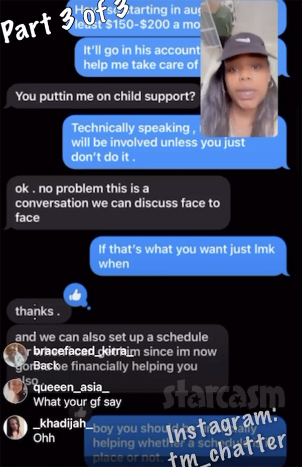 The drama was about the fact that Kiaya recently texted X’Zayveon and told him that he would need to start paying between $150 to $200 a month to help out with Amour. After X’Zayveon expressed reluctance to pay, Kiaya told him that if he refused, she would be officially filing for child support.