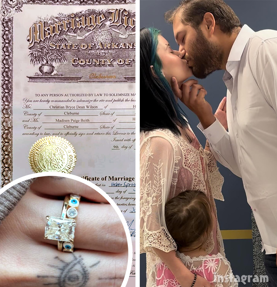 According to the marriage certificate, Madisen and Christian were married earlier today in Cleburne County, Arkansas. And if you swipe through to the last photo in the gallery, you will see that Madisen took Christian’s last name and is now Madisen Wilson.