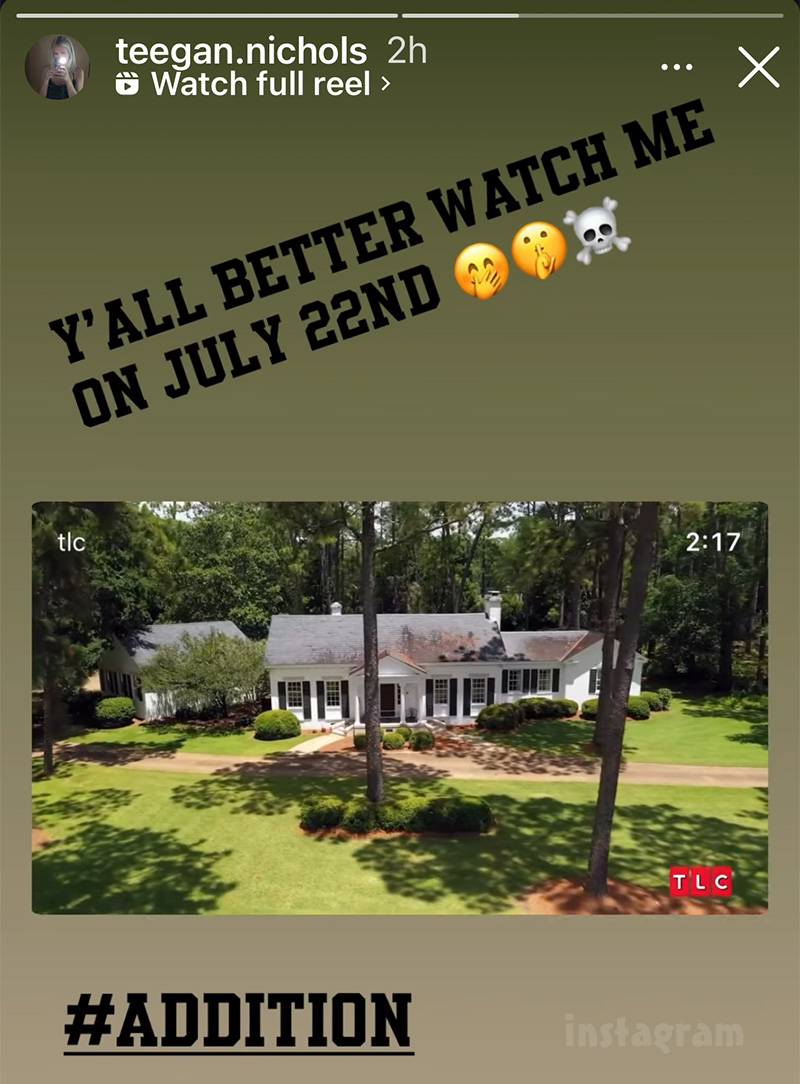 Teegan did share a post earlier today promoting the new Welcome To Plathville preview trailer. “Y’all better watch me on July 22nd,” she wrote, adding the #ADDITION hash tag and 🤭🤫☠️ emoji.