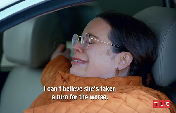 Whitney reveals things are really looking bad in a voice over. “I saw my mom today and this is really it.” Whitney is sobbing as she walks to a production crew member named Jacob for a hug.